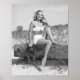 Mulher vestindo biquíni sentada em log na praia, (B&W), (Retrato) | George Marks | ID do ativo: 57416977