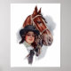 Vintage Imagem equestre com jovem mulher de chapéu preto segurando a ponte do cavalo. Arte de Harrison Fisher, e cuidadosamente retocada por mim para restaurar cor e detalhes.
