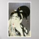 Woodblock impressão, 1798 Kitagawa Utamaro (cerca de 1753 - 31 de outubro de 1806), foi um cineasta e pintor japonês, considerado um dos maiores artistas de impressões de blocos de madeira (ukiyo-e). O nome dele era romanizado arcaicamente como Outamaro. Ele é conhecido especialmente por seus estudos de mulheres, conhecidos como bijinga, dominantemente compostos. Também produziu estudos sobre a natureza, livros ilustrados de insetos. Este impressão, Ase o fuku onna (mulher que varre suor) é um bom exemplo de bijinga. O significado literal de bijin é uma pessoa bonita, mas na prática uma mulher bonita; ga significa figura. Onna é mulher e ase é suor. Vintage da arte asiática.