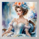 Esta bela poster de uma retrorreflectora vestindo um fabuloso conjunto com flores em seu cabelo é perfeita para sua decoração caseira.