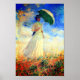 Poster com a esposa de Claude Monet, Camille, segurando um parasol verde enquanto o seu véu azul é soprado pelo vento num campo verde e ouro. Um presente de Monet excelente para fãs do impressionismo e da arte francesa.