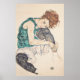 Da série de pinturas figurativas de Egon Schiele. Mulher sentada com a cabeça no joelho. Arte canvas. Schiele era um grande pintor figurativo do início do século 20. Um artista expressionista precoce. Poster Art.
