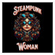 Uma ilustração digital de uma mulher vitoriana com bois, engrenagens e canos.
