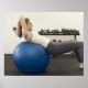 AssetID: 95466926 / {Tetra Images} / Mulher usando bolas de exercícios e pesos de mão