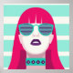 Uma mulher de cabelo vermelho vestindo óculos de sol. Esta design parece realmente eficaz nestes Poster
