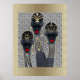 Esta arte contemporânea ao estilo africano apresenta três elongadas elegantes silhuetas femininas, cada uma enfeitiçada graciosamente e adornada com acessórios de ouro da moda. O impressionante contraste das silhuetas com o pano de fundo destaca a beleza e a força das mulheres africanas, fazer-as como uma adição perfeita a qualquer decoração moderna.