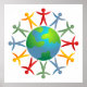 Um grupo de homens coloridos em volta de um mundo com continentes de estilo abstrato. A ilustração pode representar um mundo ou trabalho em equipe diverso, etc. Imagem disponível em vários presentes e produtos. Personalize se quiser e altere a cor do plano de fundo e adicione texto se preferir.