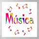 Os amantes da música vão desfrutar desta design colorida com as notas musicais e a palavra Música.