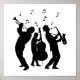 Silhueta de músicos de banda de jazz, talvez tocando em Nova Orleans histórica.