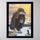 Um hipotético selo postal de um Alasca independente com um moskox de tundra. Chamado de omingmak (o barbudo) pelos nativos alaskans.