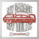 elevate your wall decor with this striking vintage car poster featuring a distressed red classic vehicle and the bold my garage my rules slogan. this high quality print captures the essence of retro automotive culture making it an ideal focal point for your workshop man cave or home office. whether you are a professional mechanic or a hobbyist collector this stylish wall art adds a touch of rugged personality and old school charm to any room.