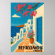Colorful wall decor featuring the unique architecture of Mykonos, Greece in a bright, minimalist illustration.