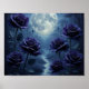 Este poster de whimsigoth apresenta uma pintura digital fantástica de uma bela lua de cheio e rosas pretos azuis escuros.