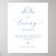 Honre seus entes queridos que passaram com este elegante cartaz de casamento "In Loving Memory". Design branco e azul com um belo monograma desenhado à mão com as iniciais de cupão na caligrafia. Este mesmo design com o monograma com iniciais em tipografia de bloco também está disponível. Capacidade de mudar a mensagem, se quiser. 8" x 10" é apenas o nosso tamanho predefinido, o sinal está disponível numa variedade de tamanhos. Estilo elegante, simples e limpo. Fácil de enquadrar ou colar/grampear em MDF barato. Design da nossa coleção "Blue Watercolor Botanical Monographic Wedding" com uma variedade de produtos de coordenação disponíveis.