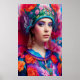 Uma imagem de uma princesa na moda com chapéu floral e tampa de zíper. Este é um trabalho de arte gerado por IA com um tema floral.