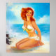 Póster Na praia Pin Up