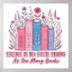 Design vibrante e colorido com uma pilha de livros com flores silvestres. O texto colorido diz: "Não há livros demais". Esse design está disponível em uma grande variedade de produtos.