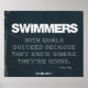 Um poster de natação motivacional, de tecido azul-denim rasgado e rasgado, com fio branco solto e inscrição cruzada. design de poster e citação de natação por Felicity Luckey of Excelente Minds Think Ajustado™.