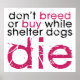 "Não criem ou Comprares enquanto os cães de abrigo morrem" design preto e rosa. Mostre seu apoio para resgate e adoção de cachorros-abrigo, e resgata quem tira cachorros do corredor da morte.