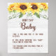 NÃO DIGA Sinal de jogo de chá de fraldas BABY (PIN) com um adorável design de girassol.