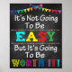Imprimível Não será fácil, mas valerá a pena ser Poster de sala de aula. Excelente para Professores e Decoração de Sala de Aula! Uma maneira fofa de adicionar personalidade à sala de aula, ao escritório de conselheiros, ao escritório da assistente social e muito mais! Design apresenta cores brilhantes contra um fundo de quadro chalkboard falsa - impressões lindamente! Brilhante e inspirador!