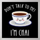 Não fale comigo! Sou Chai. Este acessório fofo e engraçado de amante de chá kawaii chai é excelente para homens ou mulheres que adoram beber chai picante, mas são um pouco tímidos. Perfeito para um bebedor de chá introvertido, e qualquer um que ama um bom trocadilho! Se você é antissocial e introvertido, mas ama chá bebendo e chai, e você ama trocadilhos, esta design é para você! Apresenta um gráfico de uma xícara de chai com um rosto kawaii fofo e ruivo.