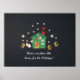 Adorável cena noturna de casa "caseira", com neve caindo e veado no pátio. A mensagem diz: "Não há lugar como casa para os feriados."