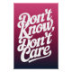 Design tipográfico dizendo: Não sei, não se importe.