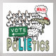 Não Vote design mostra as ovelhas enfileirando para votar enquanto nosso herói acordado vai para o outro lado. Por baixo, a palavra Política diz-vos tudo o que precisam de saber sobre este sistema corrupto sem sentido. Pare de votar neles.
