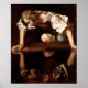 Narciso - Pintura Barroca Italiana de Caravaggio. Narcissus ou Narkissos (grego: Ν horas, possivelmente derivadas da ), significando "sono, dormência", na mitologia grega, estava um caçador do território de Thespiae em Boeotia que era conhecido por sua beleza. Ele estava excepcionalmente orgulhoso, pois desdenhou aqueles que o amavam. Como punição divina ele se apaixonou por seu próprio reflexo em uma piscina, não percebendo que era apenas uma imagem, e ele desperdiçou até a morte, não sendo capaz de deixar a beleza de seu próprio reflexo. Michelangelo Merisi da Caravaggio (1571 - 1610) foi artista italiano ativo em Roma, Nápoles, Malta e Sicília entre 1593 e 1610. Suas pinturas, que combinam uma observação realista do estado humano, tanto física quanto emocional, com o uso dramático da iluminação, tiveram influência formativa na escola de pintura barroca.