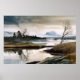 A pintura da paisagem de Tempera ao estilo de Andrew Wyeth, de um lago de terra firme perto de uma cordilheira, à luz da ascensão da manhã. Feito com algoritmos generativos e Photoshop. Este é outro design de 100% original de Hamster de Combate.