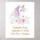 Poster Nascença Stats Unicorn Pink Blue Dourado, Girly
