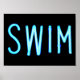 Uma bela fotografia da palavra "NATAÇÃO" em néon azul. Copyright © 2006 Karin Hildebrand Lau.
