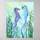 Natação do Sol, Dragão do Mar e Gato Sereia Fantasy Art Poster