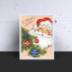 Ilustração Vintage design de Natal Feliz com um Papai Noel feliz com bochechas rosadas, uma barba branca lisa e vestindo um chapéu vermelho com uma bela árvore de Natal decorada e ornamentos de vidro. Saudações da temporada com um Natal Olá!