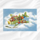 Póster Natais vintages, Papai Noel Voando um Avião