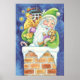 Póster Natal fofo, Papai Noel na Chaminé com Brinquedos