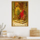 Vintage cartão de Natal húngaro transformou-se numa arte de parede. Uma garotinha de casaco vermelho está segurando uma árvore e tocando a campainha. Embora ela não pareça pobre - ela é descalça .Kellemes texto descoberto - significa feriados felizes em húngaro. Você também pode ler uma mensagem manuscrita.