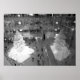 Uma fotografia a preto e branco do interior do Edifício Kitte, no distrito de Marunouchi, em Tóquio, à hora de Natal.