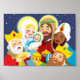 Ilustração da cena da natividade com Mary segurando o bebê Jesus nascimento Joseph e três sábios trazendo presentes. Celebre o Natal com este design bonitinho e original do Kakigori Studio.