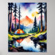 Poster Nature Watercolor Sunset Mountain Lake Camping