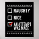 Poster Naughty Nice An Attempt Was Made - Christmas Check