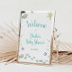 Este sinal de boas-vindas ao chá de fraldas querido apresenta um tema fofo sob o tema do mar com tartaruga e texto preto.