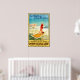 Não surfar como agora o conhecemos. Bathing surf na África do Sul. Um anúncio de viagem de trem pela Union Castle Line para a África do Sul e Oriental. Surfe consiste em uma mulher em uma plataforma plana segurando uma corda.
