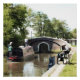 Um design de arte de um barco estreito se aproximando de uma fechadura e um homem pescando. Os barcos do Canal, conhecidos no Reino Unido como barcos estreitos, foram originalmente utilizados para transportar mercadorias em todo o país. Atualmente, são utilizadas principalmente para o lazer e atraem pessoas de todo o mundo para usufruir do nosso campo rural. Estes barcos parecem muito bonito com as suas cabanas de cor brilhante, tradicionalmente azuis, vermelhas ou verdes. Flores e designs de castelos também adoram os barcos mais tradicionais.