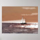Um design de abstrato de arte de um barco a vela que se dirige para o porto no final da noite. País de Gales.