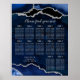 Poster Navy Blue and Silver Agate Wedding Seating Chart