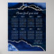 Poster Navy Silver Agate Wedding Seating Chart 8 Table