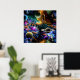 Esta poster tem uma pintura colorida de planetas com nebulosas brilhantes com estrelas. Esta arte é muito detalhada e pareceria excelente numa decoração moderna. Faz um presente excelente para alguém que gosta de espaço e astronomia.