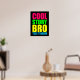 Cores brilhantes como neon.. letras grandes em blocos contra um fundo preto. História Legal, Irmão! Diga de novo!